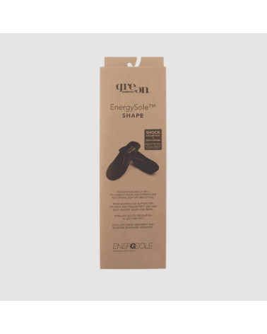 Vores unikke 4,5 mm. EnergySole™ Shape har indbygget svangstøtte og ekstra komfort under hæl og forfod. Formstøbt EVA-indlægssål med TPU-carbonskaft og Energyfoam for optimal støtte og pasform. Giver effektiv støtte til svangen og stabiliserer fødder, ben og ryg mod stød og slid. Stimulerer blodcirkulationen i ben og fødder. Fremragende svedabsorberende og fugttransporterende egenskaber