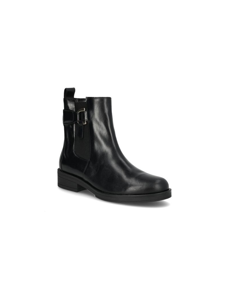Design: Elegant chelsea‑ankelstøvlet i sort med glat læder og rund snude.