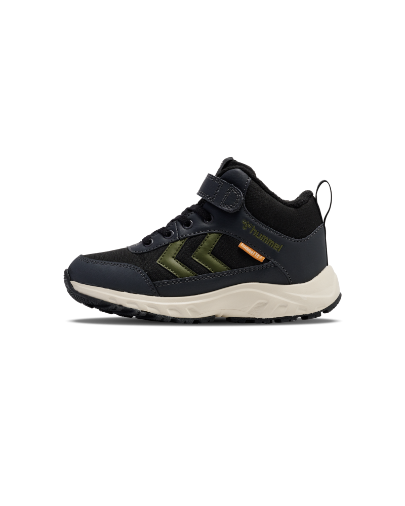 ROOT TEX JR er bygget til at holde deres fødder komfortable, tørre og ventilerede takket være hummelTEX membranen i ripstopnylon og en overdel med kunstlæder. Denne hummel® sneaker er inspireret af vandrestøvler og har en EVA mellemsål med en gummiydersål, som sikrer en let og behagelig gang. Denne støvle har varmt for og elastiksnørebånd med klipbar velcrolukning, så pasformen omkring deres fødder altid er perfekt. Denne sneaker har en normal bredde.