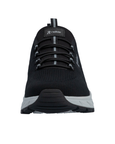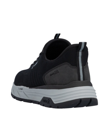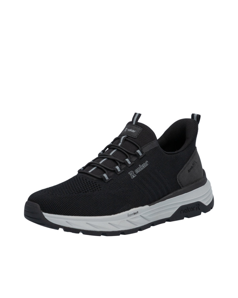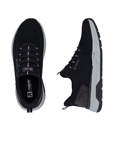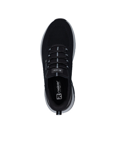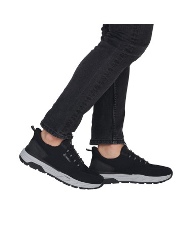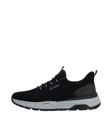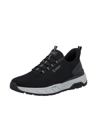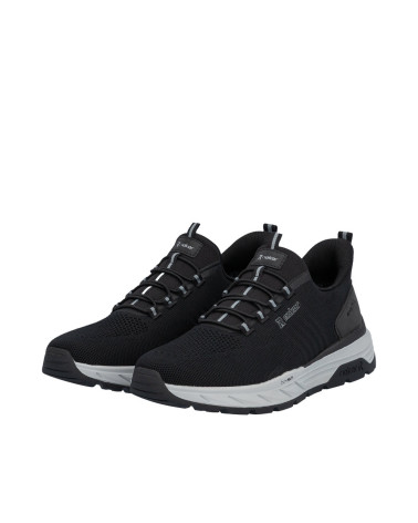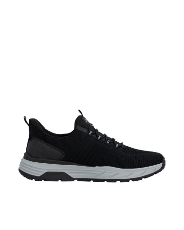 Rieker Ready 2 Go herresneakers i sort er et praktisk og stilrent valg til daglig brug. Skoen kombinerer et moderne look med høj komfort, så du er godt klædt på hele dagen. Den fleksible elastik former sig efter foden, mens den stabile hælkappe gør det nemt at træde direkte i skoen uden at bruge hænder. Indvendigt finder du en blød, udtagelig indersål, der sikrer en behagelig følelse ved hvert skridt. Den mønstrede ydersål bidrager både til god stødabsorbering og et sikkert fodfæste.